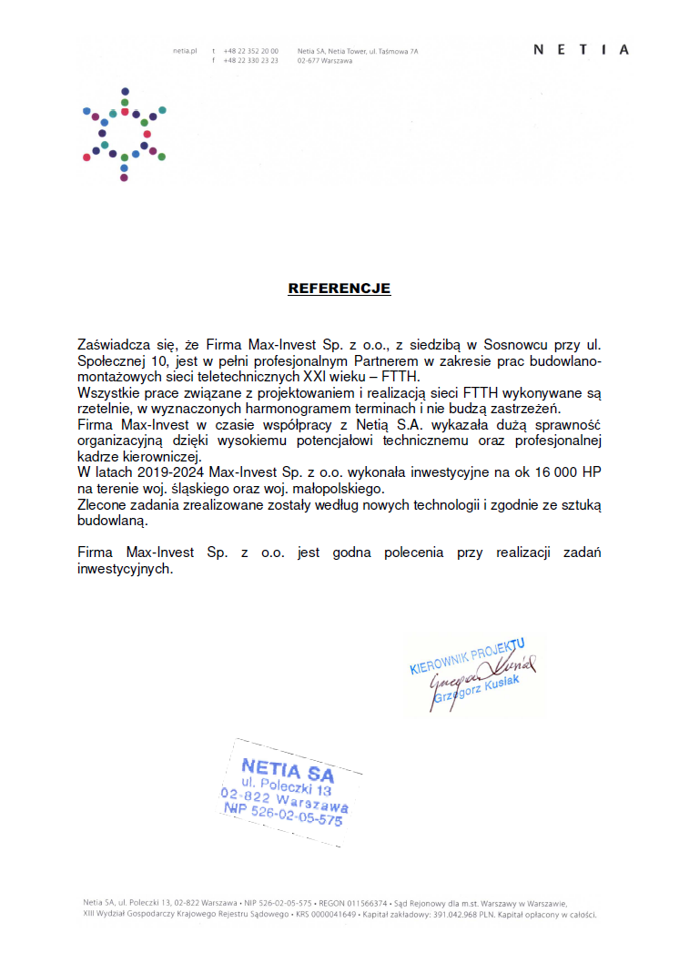 Budowa / przebudowa sieci telekomunikacyjnych i teletechnicznych